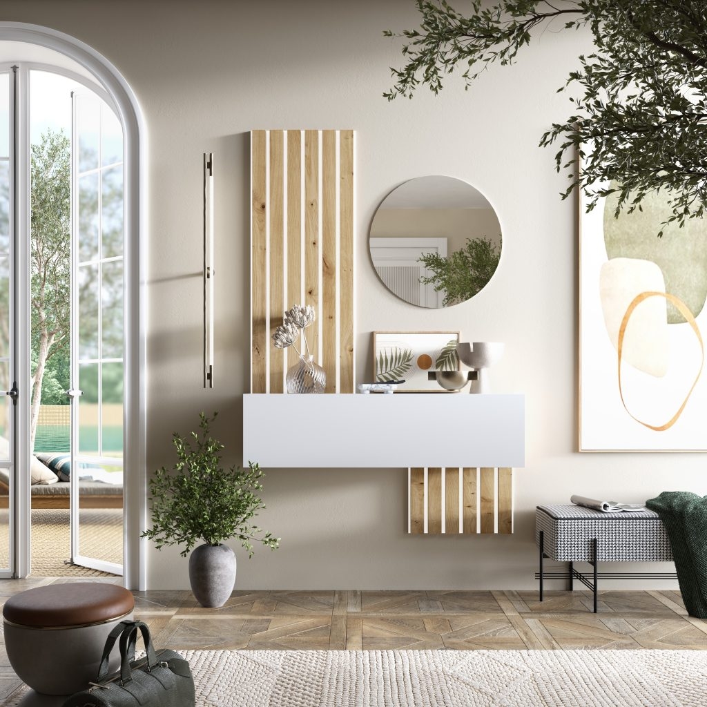 Recibidor en tablero de melamina color Artisan y Blanco.