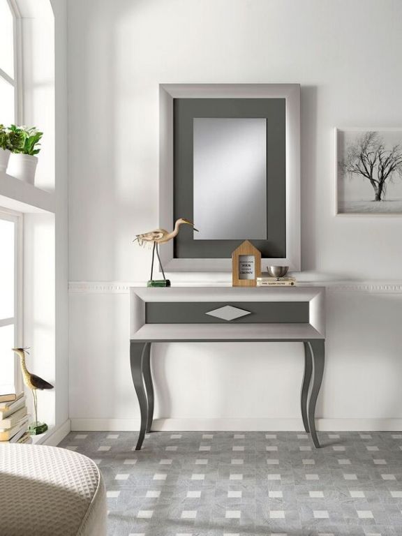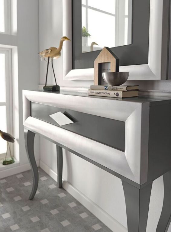 Consola moldura curva y tirador número 5. Acabada en color plata-10 / resto grafito.
