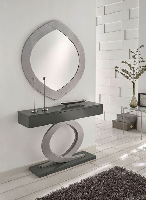 Consola cajonera + zócalo. Colores grafito/central plata 10. Opcional otros colores. Marco con luna plata-10.