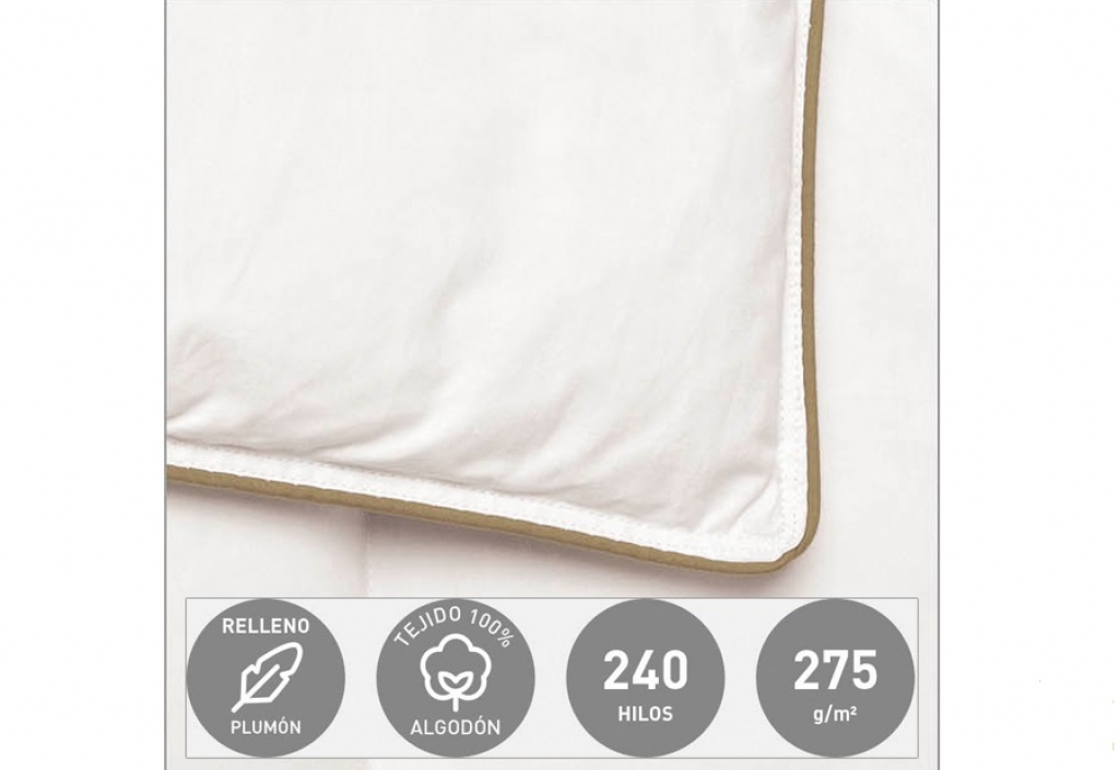 - Composición: Tejido 100% algodón. Relleno 92% plumón 8% pluma.