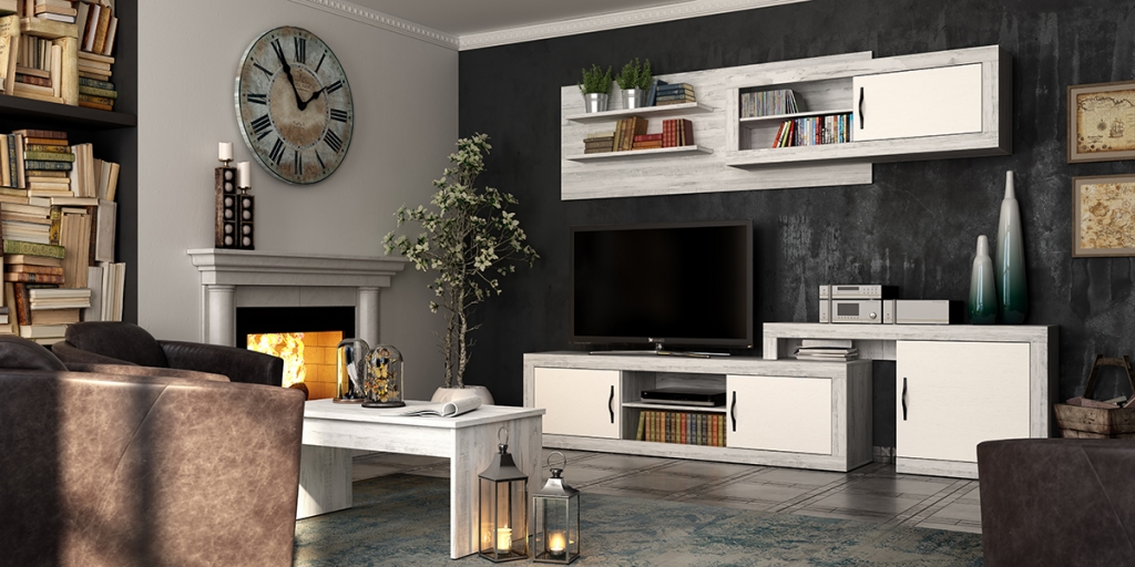 mesas de comedor, mesas de centro, estantería pared con trasera y estanterías sin trasera.