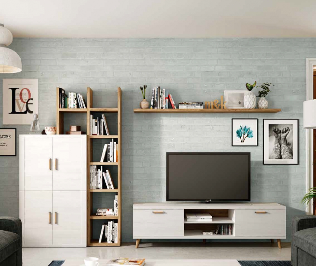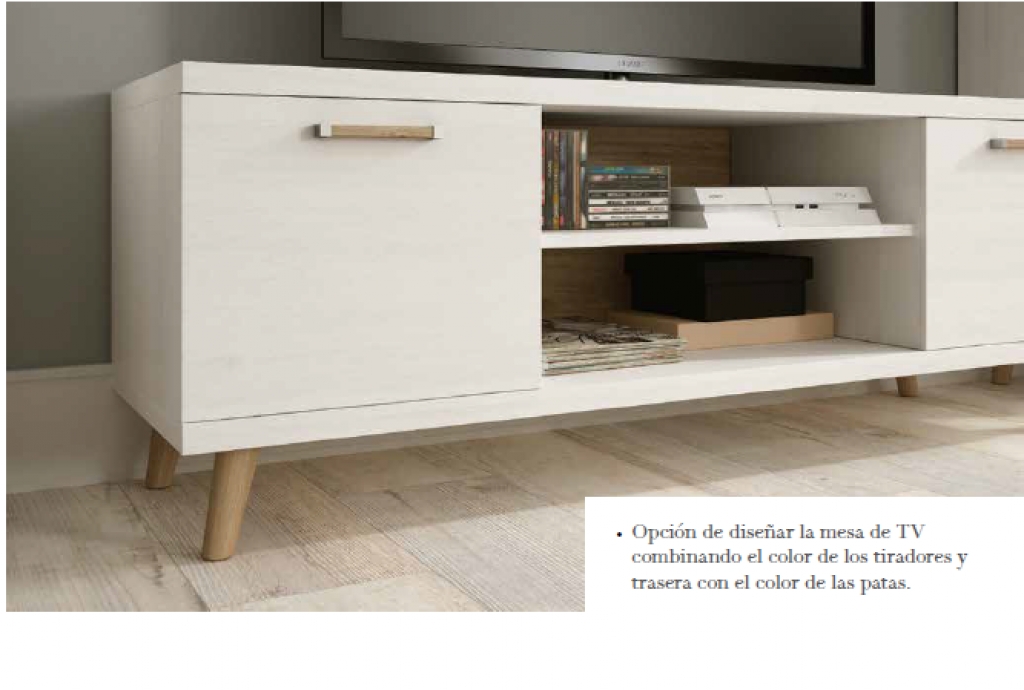 • Bajo TV 2 puertas y 2 huecos 180x38x42 trasera en roble natural