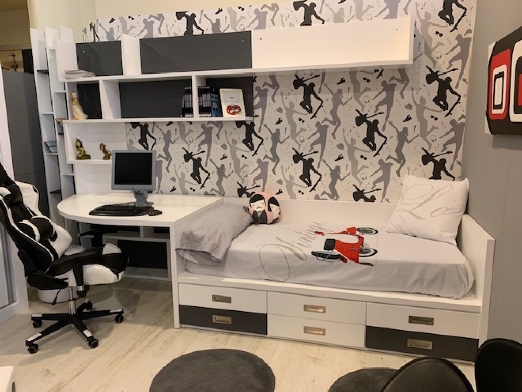 Dormitorio en tablero de MDF lacado blanco mate / gris antracita